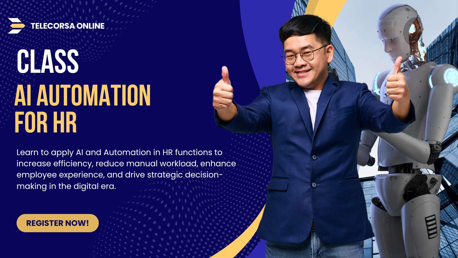 ในฐานะผู้เชี่ยวชาญด้าน Digital Marketing และ AI Automation ที่มีประสบการณ์กว่า 24 ปี หลักสูตรนี้ออกแบบมาโดยเฉพาะสำหรับผู้บริหารและผู้ปฏิบัติงานด้าน HR (งานบุคคล) ที่ต้องการยกระดับการบริหารจัดการทรัพยากรบุคคลให้มีประสิทธิภาพสูงสุด คุณจะได้เรียนรู้วิธีปลดล็อกพลัง AI และ Automation (ด้วย Make.com/n8n) เพื่อเปลี่ยนงาน HR ประจำวันที่ซับซ้อนให้เป็นระบบอัตโนมัติ ทำให้แผนก HR ของคุณทำงานได้ 24 ชั่วโมง ลดภาระงาน Manual อย่างมหาศาล ประหยัดเวลา และ ลดต้นทุน พร้อมเพิ่ม ความแม่นยำ และ ประสิทธิภาพ ในการตัดสินใจเชิงกลยุทธ์ นี่คือคอร์สสำหรับผู้ที่ต้องการ Optimize การดำเนินงาน HR และขับเคลื่อนการเติบโตขององค์กรด้วยเทคโนโลยีอัจฉริยะ